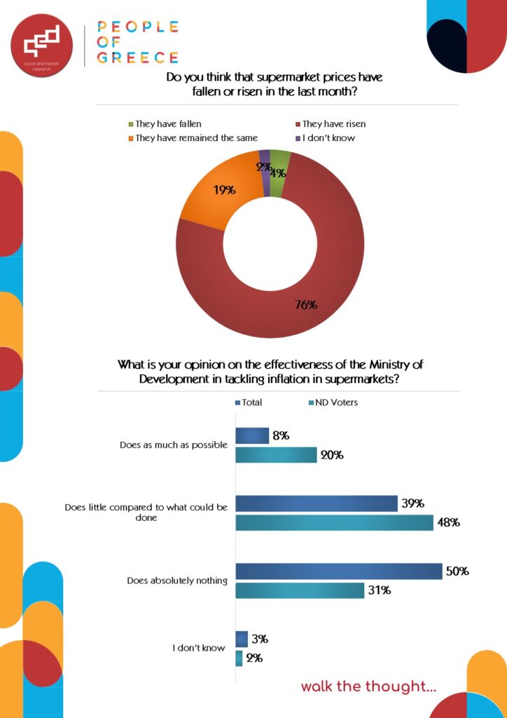 - Three out of four Greeks see increases in supermarket prices, despite government announcements of reductions, while nine out of ten believe that the state is “not doing enough.” The trauma of a decade of economic crisis will be difficult to offset with regular measures against inflation.