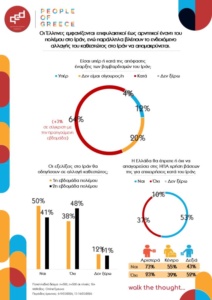 • Είναι η εναντίωση των Ελλήνων στους βομβαρδισμούς κατά του Ιράν και στη χρήση στρατιωτικών βάσεων «ειδικής συγκυρίας» ή σχετίζονται με τη γενικότερη στάση τους απέναντι στους πολέμους ή στη διεθνή πολιτική;