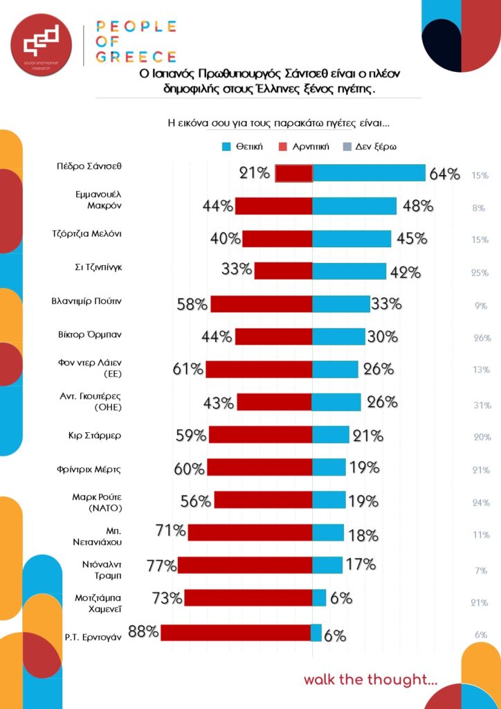 • Σε ποιο βαθμό η υψηλή δημοφιλία ξένων ηγετών όπως ο Πέδρο Σάντσεθ και η χαμηλή αποδοχή του Ντόναλντ Τραμπ επηρεάζονται από ιδεολογία, μέσα ενημέρωσης ή διεθνείς εξελίξεις;