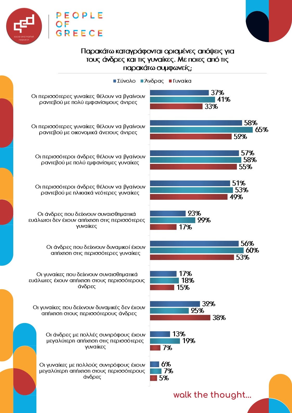 Στο περιθώριο της παραπάνω επικαιρότητας, η πλατφόρμα People of Greece κατέγραψε την έκταση των αρνητικών στερεοτύπων για το ανδρικό και το γυναικείο φύλο, για την αρρενωπότητα και τη θηλυκότητα.